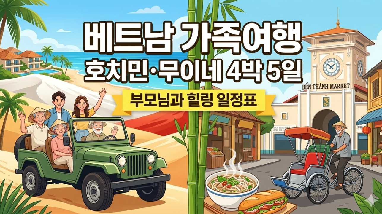 이동 동선 최소화, 더 클리프 리조트 호캉스, 무이네 지프투어, 호치민 1군 맛집까지 '휴식과 힐링'에 초점을 맞춘 완벽한 가족여행 일정표를 공유합니다.