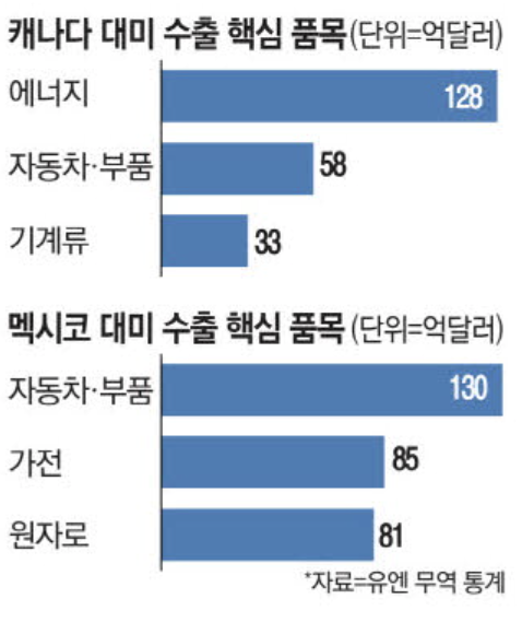캐나다, 멕시코 대미 수출 핵심 품목 (출처 : 매일경제)