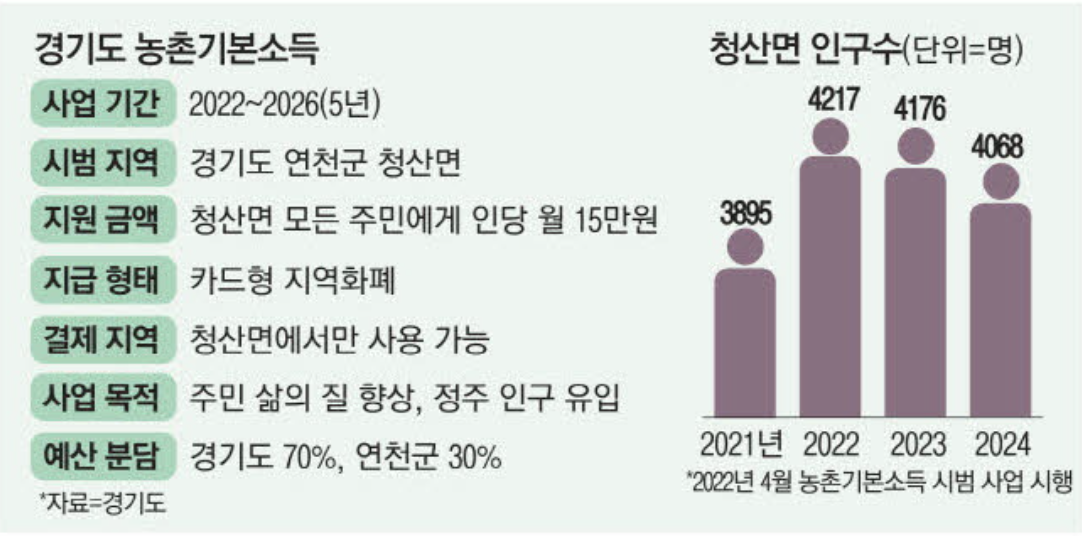 경기도 연천군 청산면에서 시행 중인 농촌기본소득 시범 사업이 인구 유입 효과를 거두지 못하고 있다.